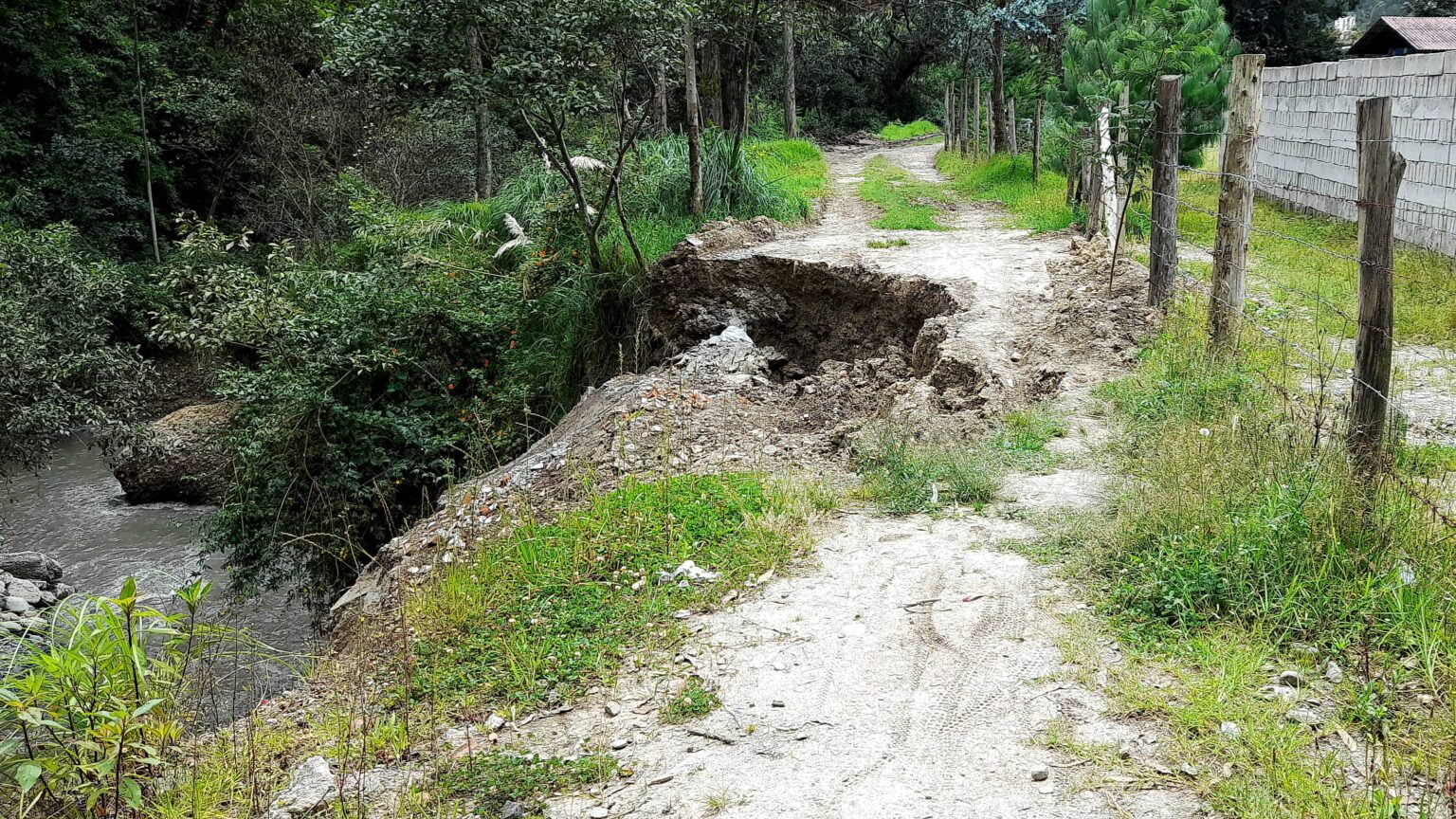 Al sur de la ciudad, específicamente desde el ingreso al sendero de la UNL, ya se puede visualizar la falta de atención por parte de las autoridades, a pocos metros ya existen partes del camino incompletas y con riesgo mayoritario de derrumbo, lo que dejaría incomunicado a solo escasos metros del camino.